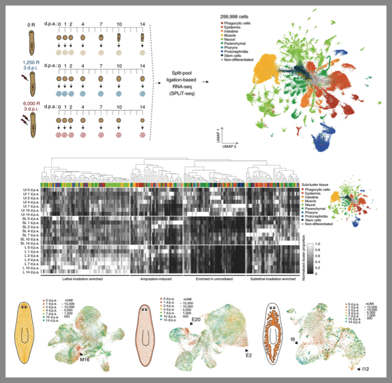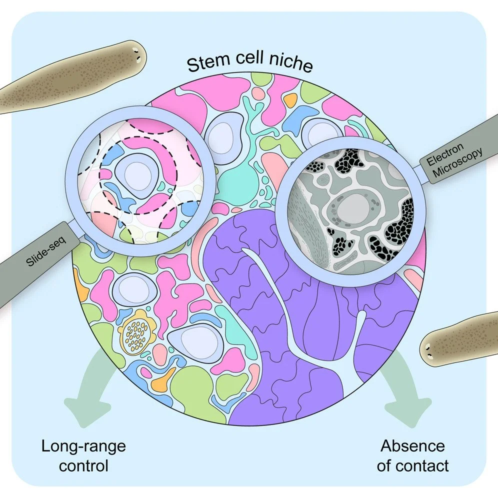 Mann FG, Brewster CE, D. Vuu, Dewars ER, Nien S, Guerrero-Hernández C, Morrison JA, Maddera LE, McClain ML, Hall KE, Malloy S, Chen S, Slaughter BD, S. McKinney, Perera A, Nowotarski SH, Benham-Pyle BW†, Sánchez Alvarado A†, Molecular and cellular characterization of planarian stem cell microenvironments. Cell Reports Oct 25:116401 (2025). DOI: 10.1016/j.celrep.2025.116401